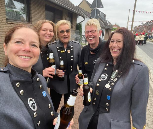 Hallo, ihr Lieben. Wir sind die Anrather Mädels. Unsere Gruppe besteht seit 2010. Wir sind 13 Mitglieder – ob aktiv oder passiv – im Alter zwischen 27 und 68 Jahren. Bei uns steht in erster Linie der Spaß im Vordergrund: gemeinsame Touren/Ausflüge und einmal im Monat Versammlungen (einfach Beisammensein) sowie das Feiern des Schützenfestes mit allen Schützenschwestern und -brüdern. Wer Interesse an einer verrückten, spontanen Gruppe hat, kann sich gerne melden. Wir wünschen dem diesjährigen Königshaus ein unvergesslich schönes Schützenjahr.
